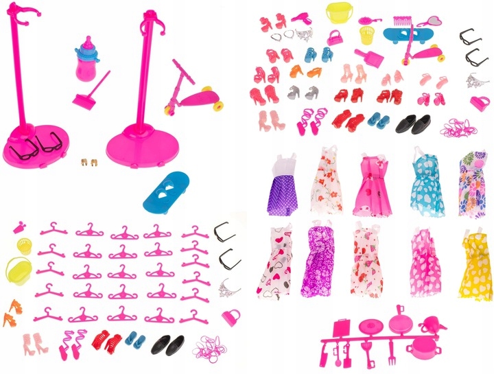 ⭐⭐SUKIENKI DLA LALEK + AKCESORIA GADŻETY UBRANKA WÓZEK MEGA ZESTAW 125 SZT⭐⭐