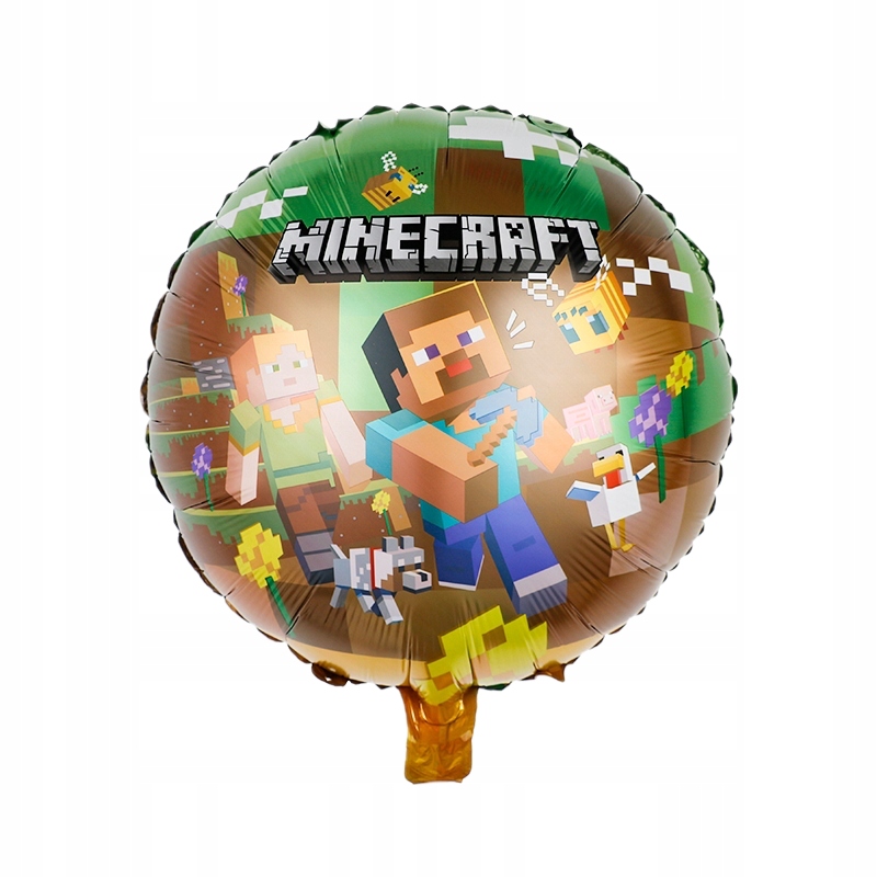 - 2 x okrągłe balony Minecraft – średnica ok. 45 cm Z charakterystyczną grafiką nawiązującą do świata bloków – świetne do tworzenia kompozycji balonowych.