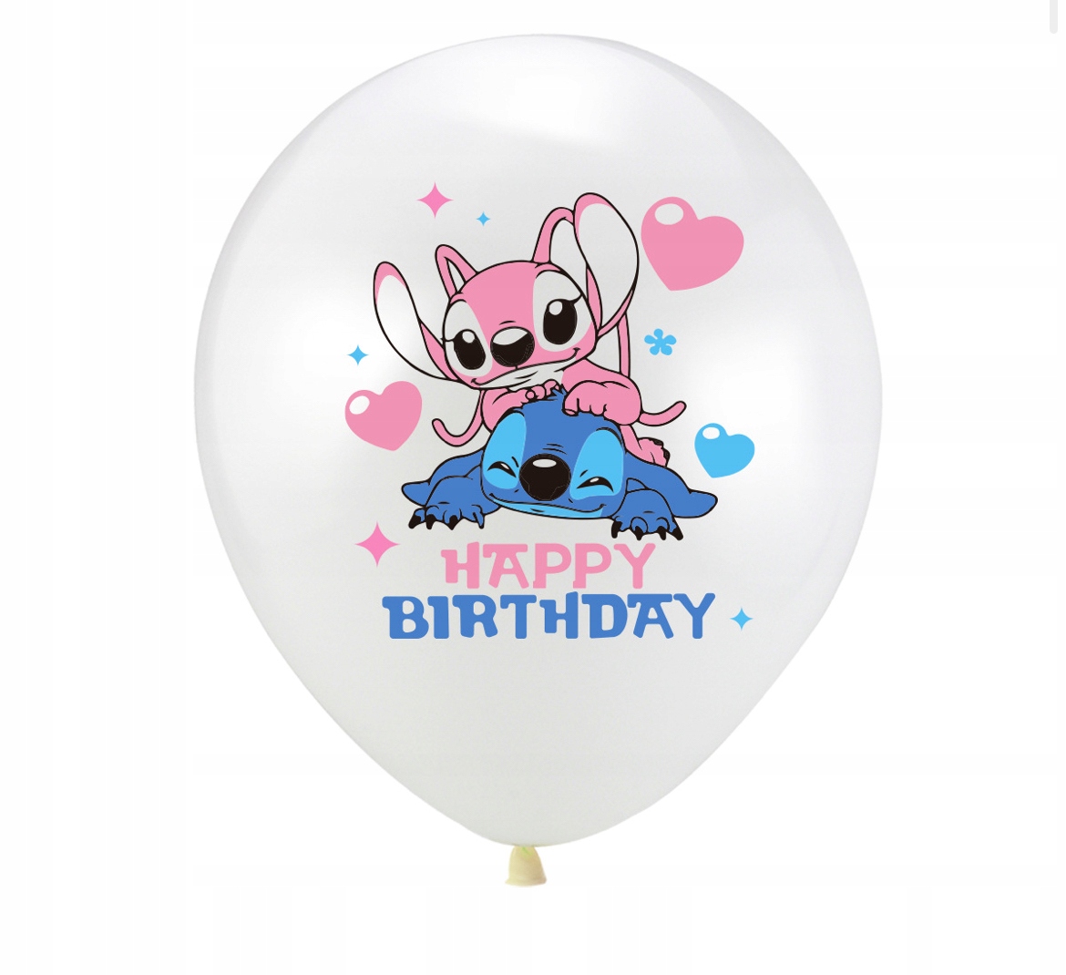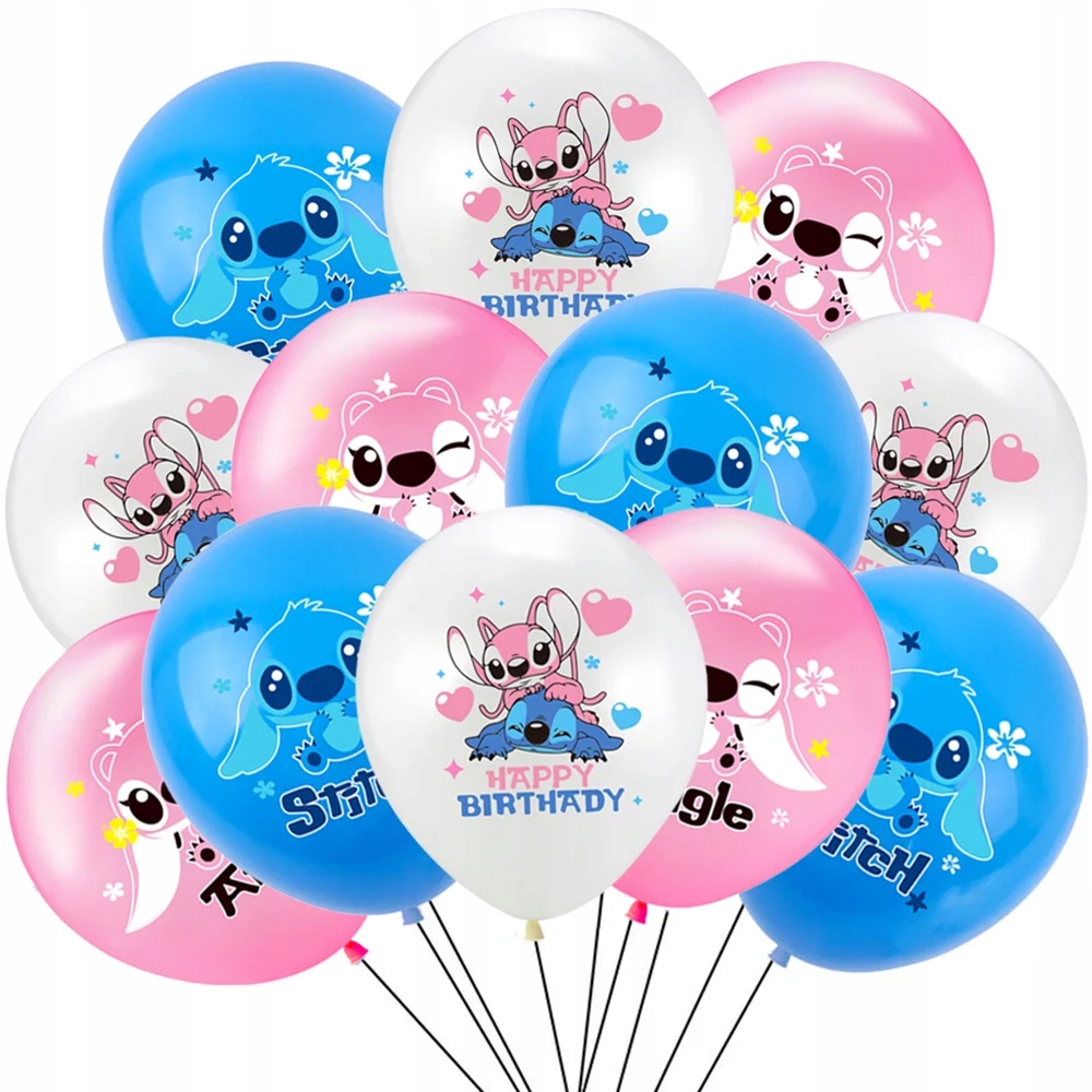 - 12 balonów lateksowych z nadrukiem Stitch miks kolorów – każdy zestaw zawiera różne barwy, co daje efekt pięknej, zróżnicowanej dekoracji