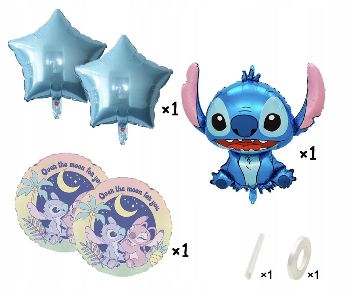 Wprowadzisz na imprezę ogrom radości i uroku dzięki temu wyjątkowemu zestawowi balonów inspirowanych uroczą, niebieską postacią Stitch!