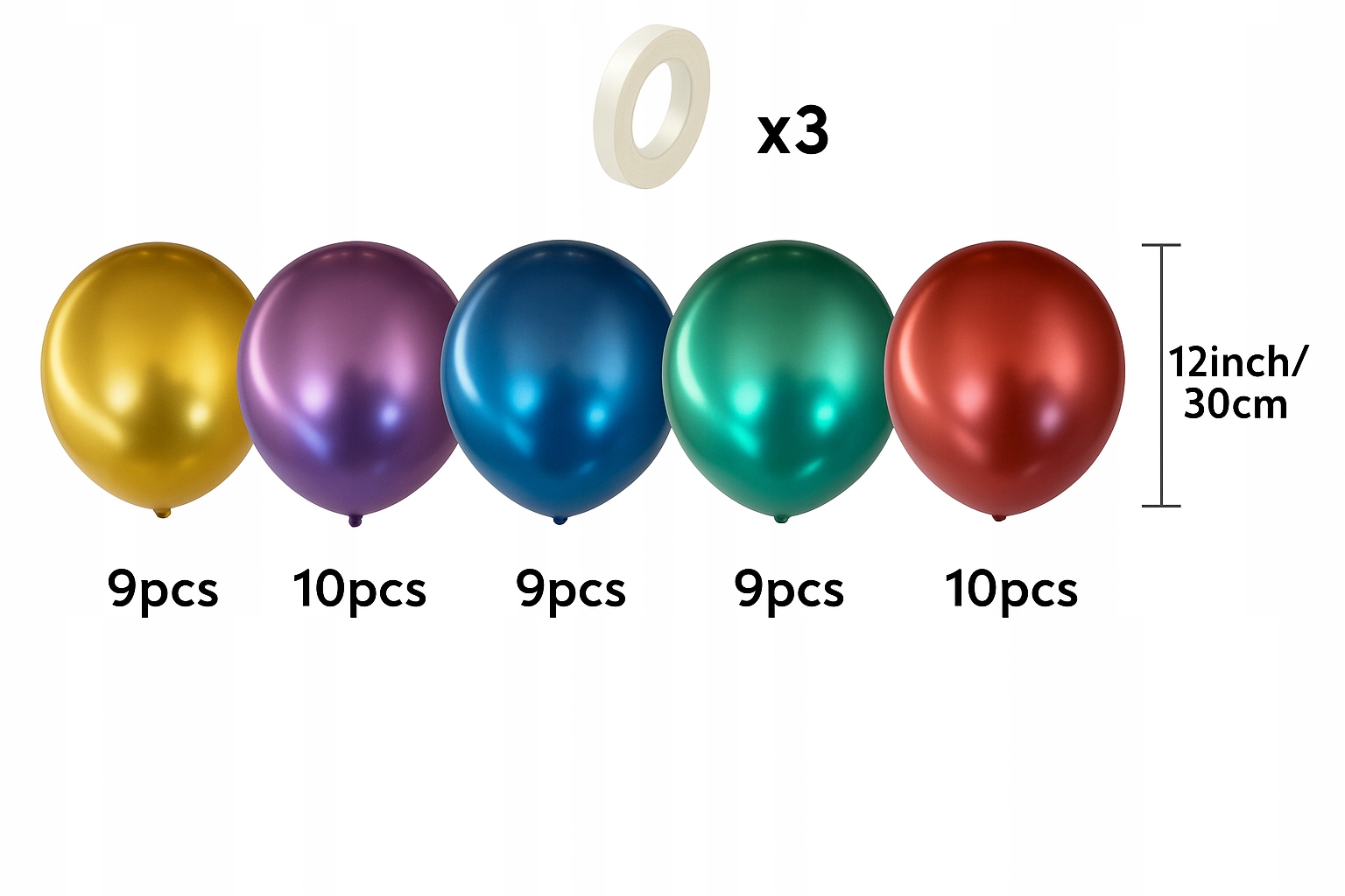 - Balon metaliczny czerwony 30 cm: 10 szt.