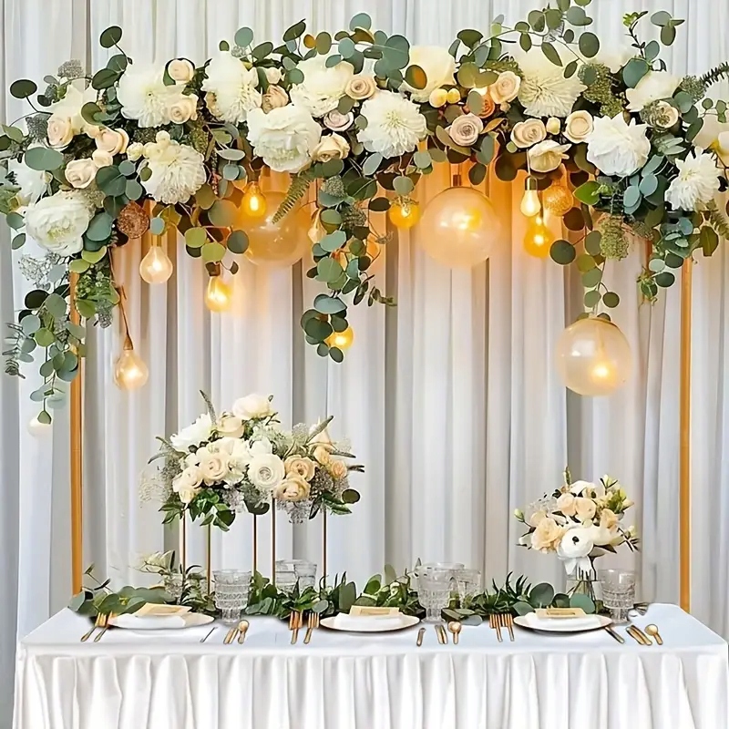 Łuk stołowy pozwala w prosty sposób zamienić zwykłe przyjęcie w wyjątkowe wydarzenie. Można go udekorować kwiatami, girlandami, balonami, lampkami LED czy materiałami w dowolnym kolorze, dopasowując do tematu imprezy. Idealny na: