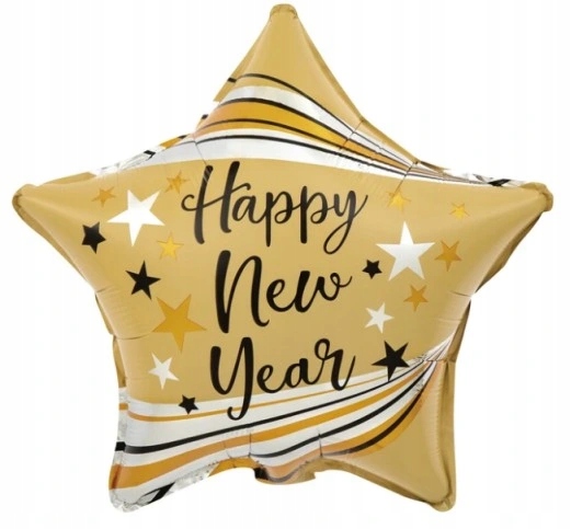 - 2 szt. – balony foliowe gwiazda „Happy New Year” 45 cm