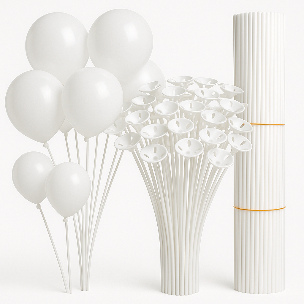 Zrób efekt WOW na każdej imprezie! Nasze patyczki do balonów z eleganckimi, białymi koszyczkami to prosty sposób, by nadać Twoim balonom styl, porządek i profesjonalny wygląd – bez potrzeby używania helu. Idealne na urodziny, wesela, chrzciny, komunie, baby shower czy eventy firmowe.