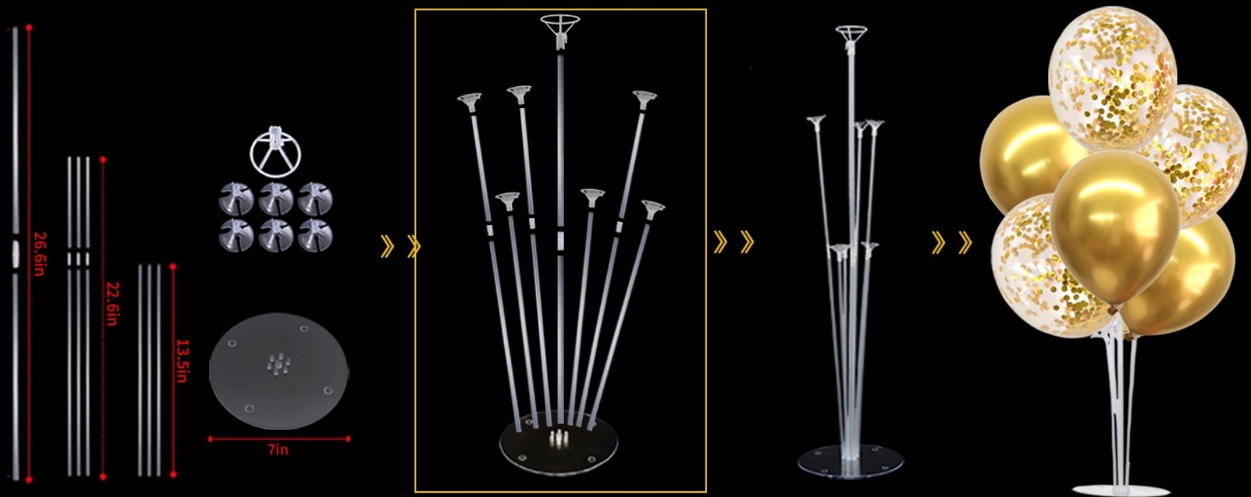 - 4 wielorazowe stojaki na balony do dekoracji stołowych