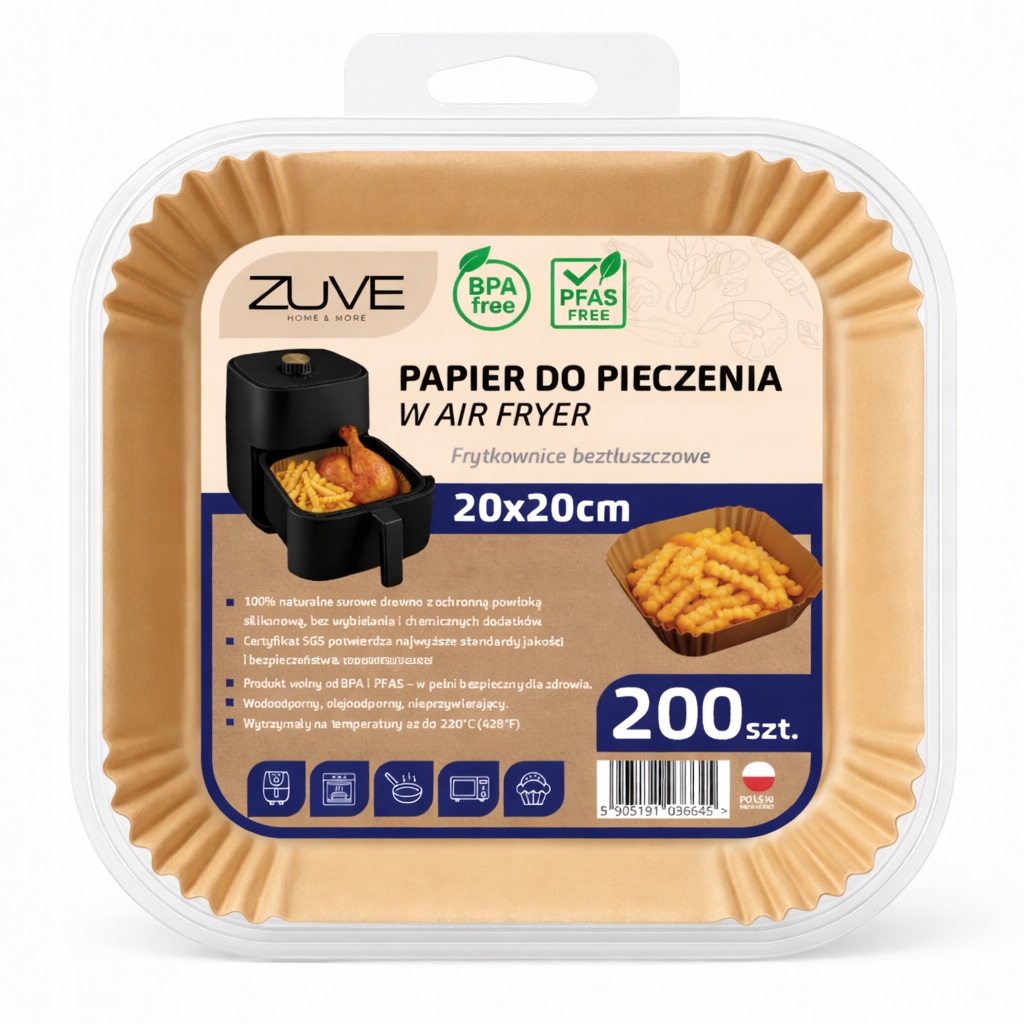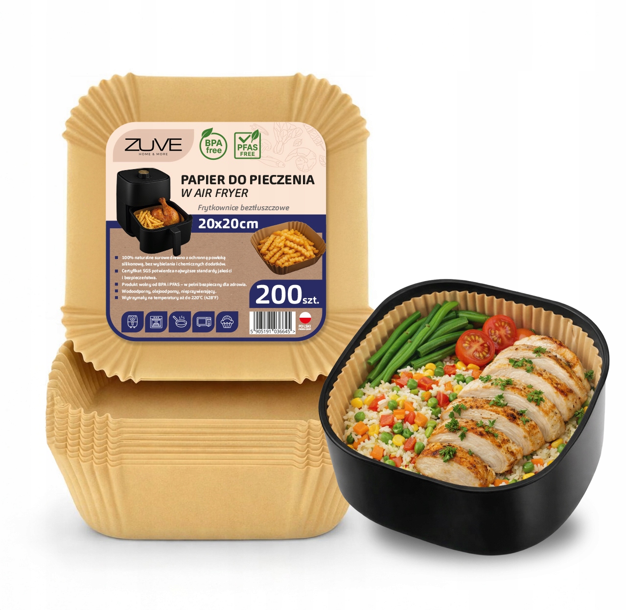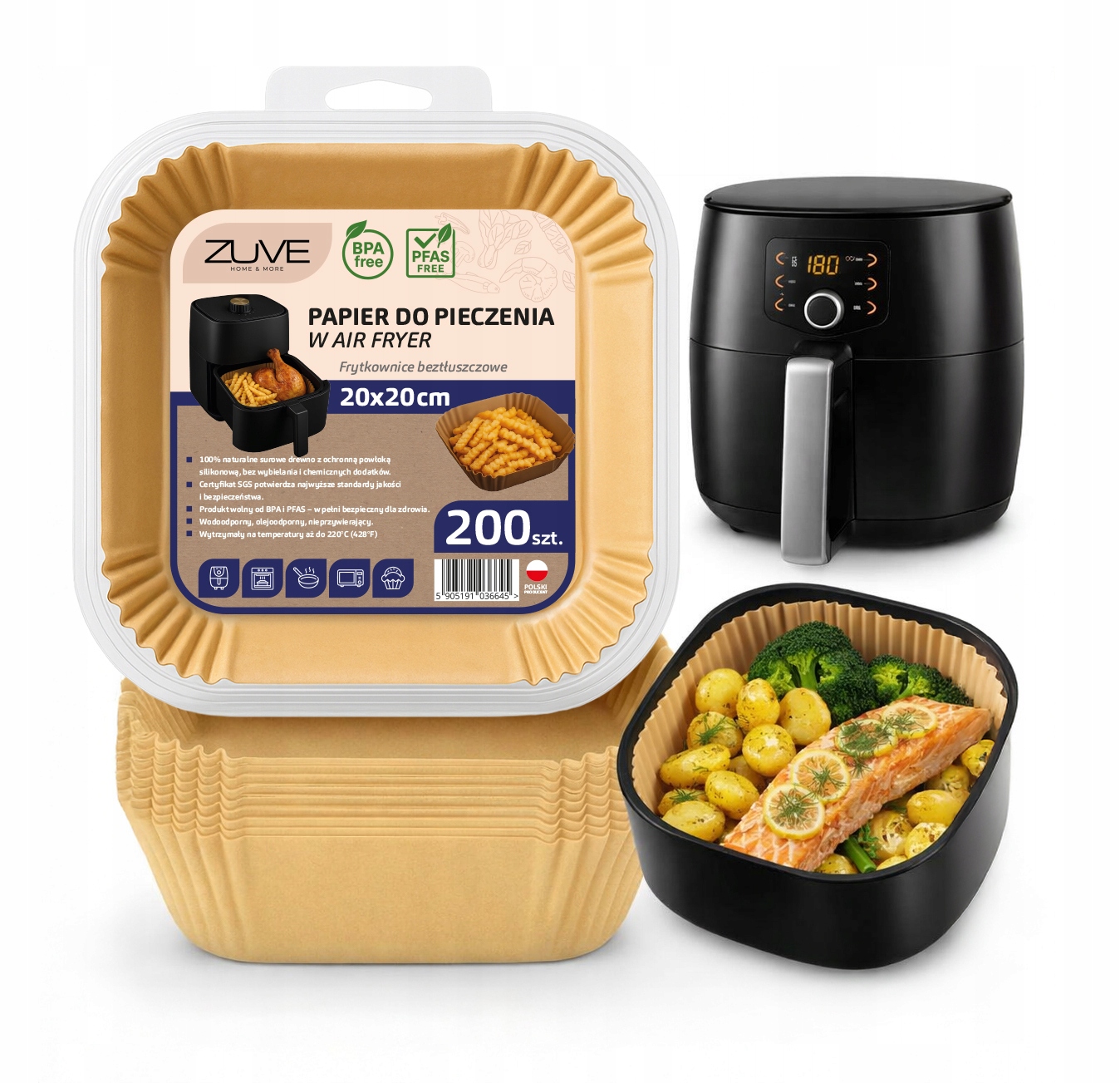 Papier do Pieczenia 20×20 cm – 200 sztuk wkładek do frytkownicy beztłuszczowej Air Fryer