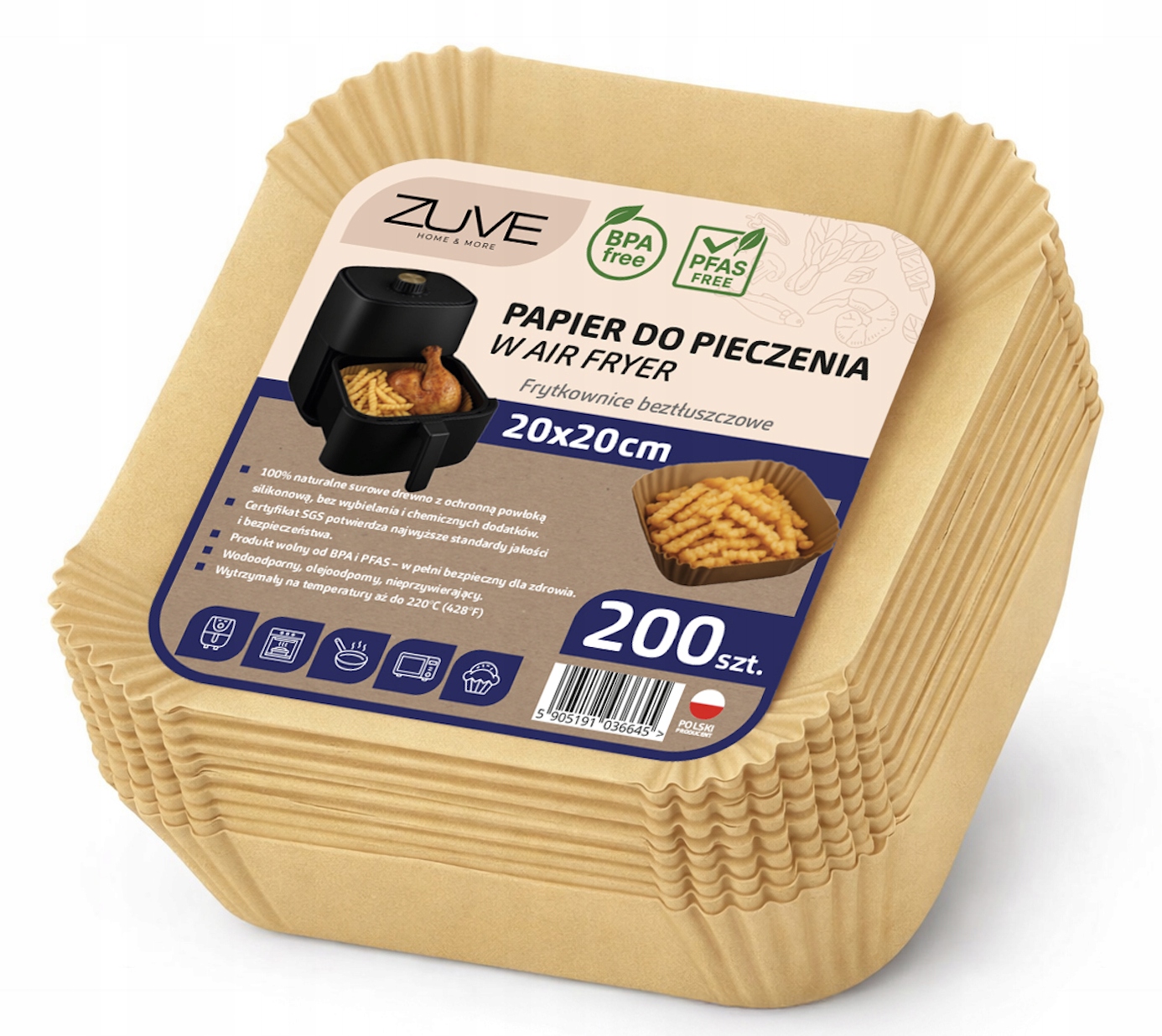 200 sztuk WKŁAD AIR FRYER PAPIER WKŁADY PAPIEROWE DO FRYTKOWNICY BEZTŁUSZCZOWEJ PAKOWANE W BLISTER