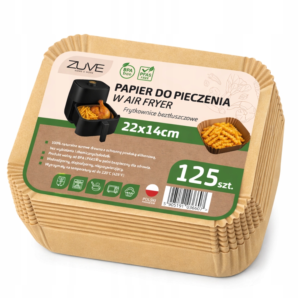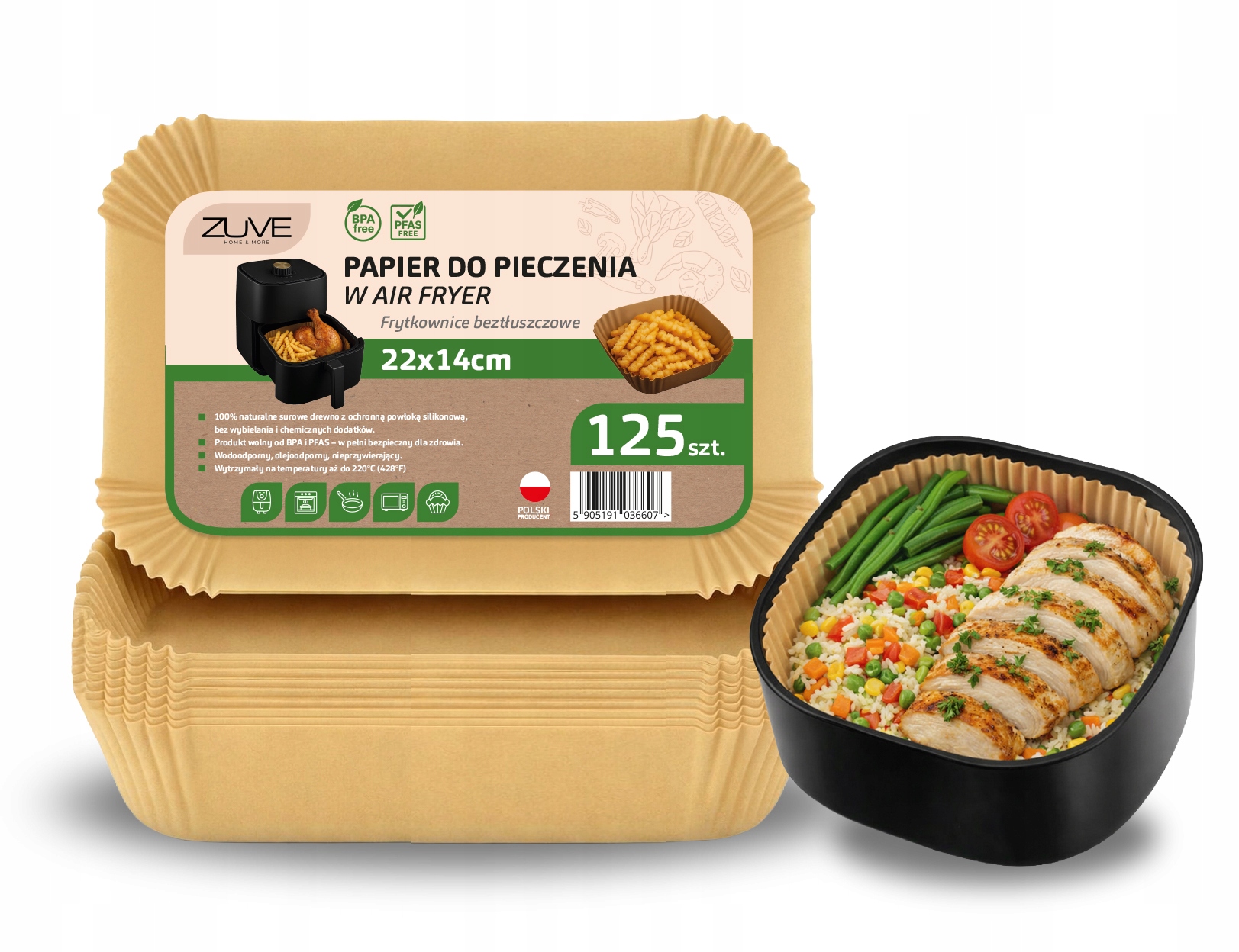 125 sztuk WKŁAD AIR FRYER PAPIER WKŁADY PAPIEROWE DO FRYTKOWNICY BEZTŁUSZCZOWEJ PAKOWANE W BLISTER