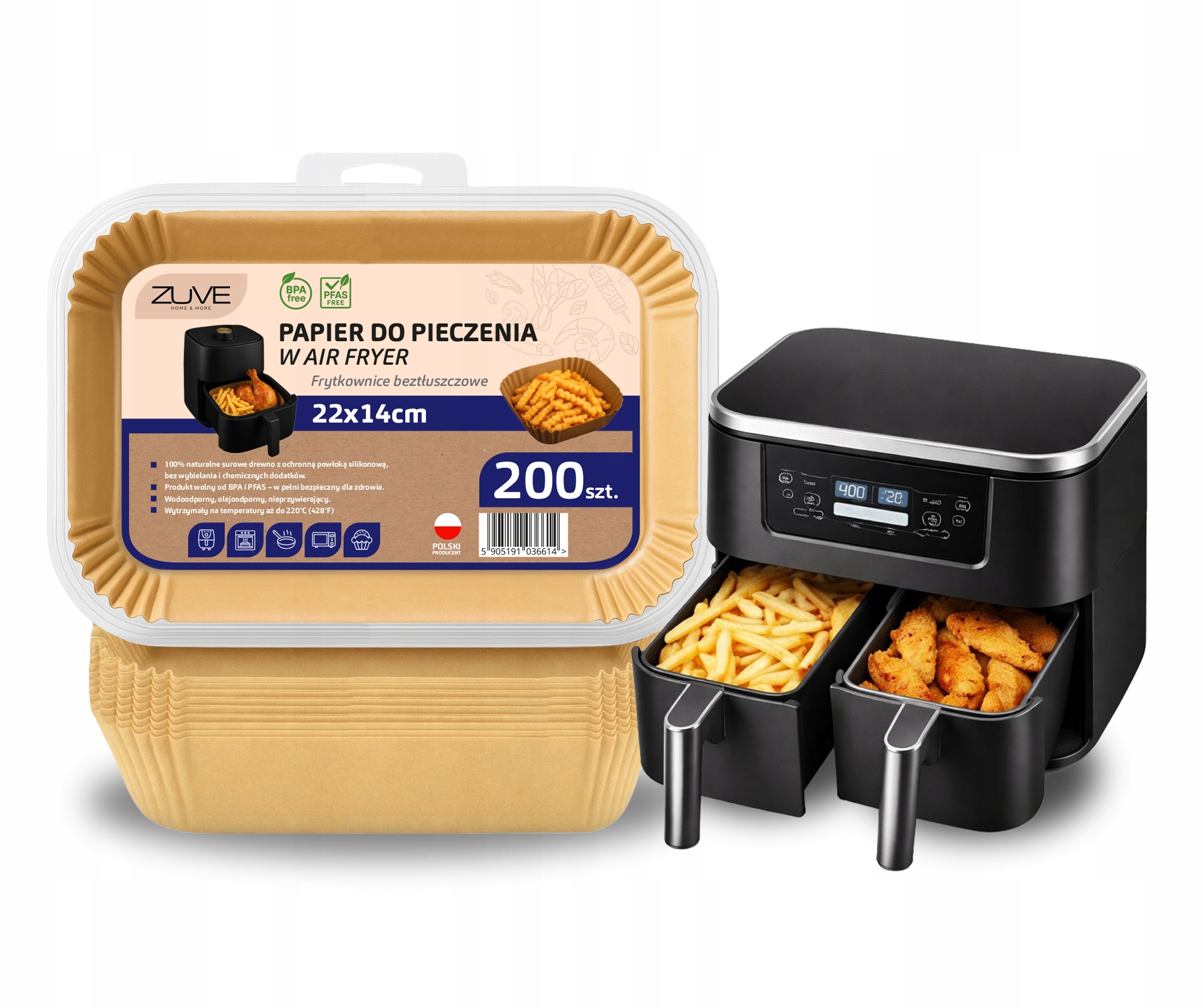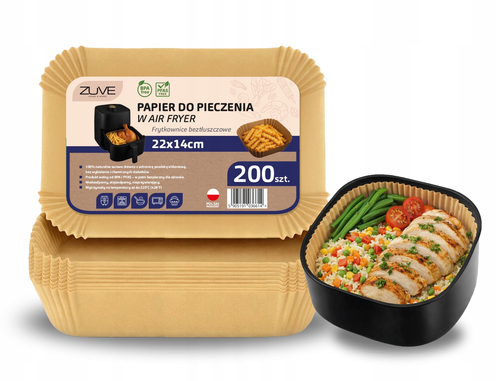 - ✅ Rozmiar 22×14 cm – idealne dopasowanie do frytkownic np. Ninja