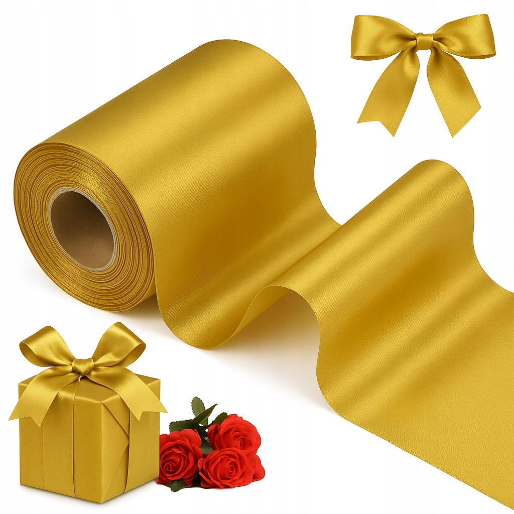Złota wstążka satynowa marki brokatove to doskonały wybór do tworzenia eleganckich dekoracji na różne okazje: Ślub, Walentynki, Boże Narodzenie, Dzień Kobiet oraz inne specjalne chwile wymagające szczypty elegancji.